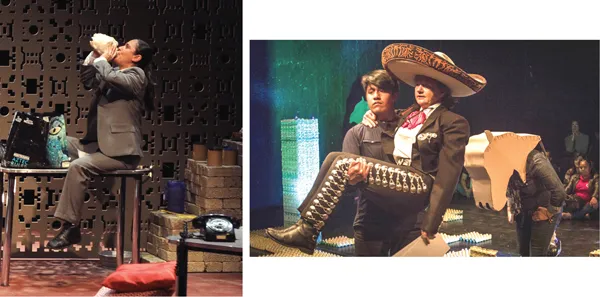 Analysing the potential of live performance, Peggy Phelan has explained that âPerformance remains a compelling art because it contains the possibility of both the actor and the spectator becoming transformed during the eventâs unfolding.â10 Drawing on Jill Dolanâs discussions of theatre and utopia, these performances âoffer a place to scrutinize public meanings [and] also to embody and [âŠ] enact the affective possibilities of âdoingsâ that gesture toward a much better world.â11 In the projects of La MĂĄquina, through the pulsating sensory environment of live performance and within a social framework of collective memory, these multifaceted, provocative bodies invite and challenge spectators and participants to embrace an aesthetic of multiplicity and openness to dynamic relationships. Through an environment of convivio, they engage âa politics of invitation, [and] a politics of community.â12 From multi-year processes leading to finalized theatre performances, to ongoing processes of work-in-progress, to co-participatory performative events on stage, these projects facilitate poetic unfoldings with the potential to transform. Seeking to confront and transform stereotypes, they offer feminist and queer re-visions of official histories and collective memories. As bodies make gestures, read words, strike poses, sing songs and stand witness they are engaged in and with incomplete pasts, unfolding and folding time, performing unfixity and possibility.13