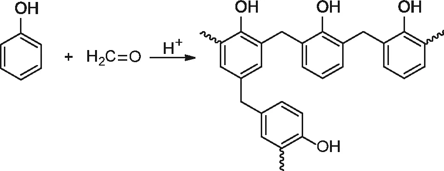 Phenolic resins are synthesised by the step-growth polymerisation of formaldehyde and phenol in the presence of an acid or a base catalyst. Novolacs are formed under acidic conditions with an excess of phenol to formaldehyde (HCHO) stoichiometry (1.5–1.7) in the feed, whereas resoles are synthesised under basic conditions with an excess of formaldehyde (phenol: HCHO = 1:1.6) in the feed [14, 15, 16]. Novolac requires the presence of cross-linking agents such as hexamethylene tetramine, whereas resoles can be cured by heating [17, 18, 19]. Synthetic schemes for novolac and resoles are shown in Schemes 1.1 and 1.2 respectively.