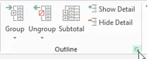 1. On the Data tab, click the Dialog Launcher in the corner of the Outline group.