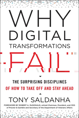 As mentioned earlier, digital transformation is the modern-day fight to survive the existential threat of digital disruption caused by the Fourth Industrial Revolution. Half the companies on the Fortune 500 list will turn over in the next decade. The disruption is here, itâs massive, and itâs urgent. Per Credit Suisse,6 the average life span of an S&P 500 company today is twenty years, down from sixty years in the 1950s, and falling fast. Entrepreneurs, boards, executives, and public organizations are actively consumed by this issue. However, the sad truth is that 70 percent of all digital transformations still fail today. Some have put that number as high as 84 percent.7 Thatâs a shocking number, given the extremely high stakes. We must do better!