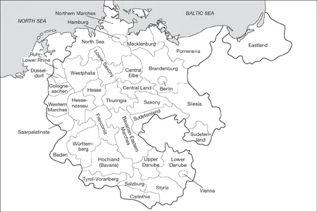 The Hitler Jugend was organized on a regional basis. This map shows the various districts in 1938, after the Anschluss (union) with Austria and the absorption of the Sudetenland into the Greater German Reich.