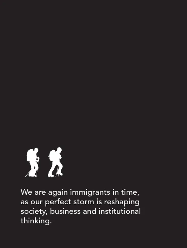 Speaking about the post–World War II era, cultural anthropologist Margaret Mead once wrote, ‘All of us who grew up before the war are immigrants in time, immigrants from an earlier world, living in an age essentially different from anything we knew before'. We are again immigrants in time, as our perfect storm is reshaping society, business and institutional thinking.