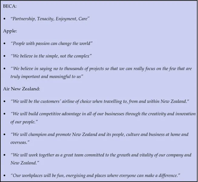 Organisations often list a number of core values, beliefs or principles that guide their decision-making. Previously derided for being bland and generic, organisations are now striving to make these more specific, more interesting and hence more useful from the point of view of encapsulating a corporate identity that can drive a strategy (see Figure 1.1).