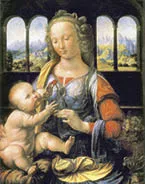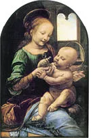 ![]() | 12 Madonna Litta (St. Petersburg, Eremitage). Entstanden wohl Anfang der 1490er-Jahre; die Zuschreibung an Leonardo ist sehr umstritten. |