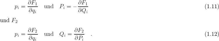 Die erzeugenden Funktionen F hängen jeweils von einer alten und einer neuen PhasenraumKoordinate ab. Dies führt zu 4 unterschiedlichen Erzeugenden F1(