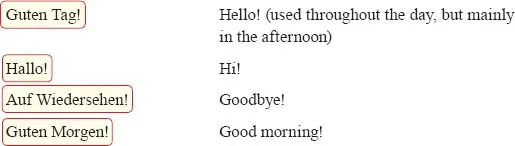 - 1. You probably know quite a bit of German already, just from having travelled there or snippets you’ve picked up elsewhere. Look at the following German words and phrases and connect them to the correct English equivalent. Example: