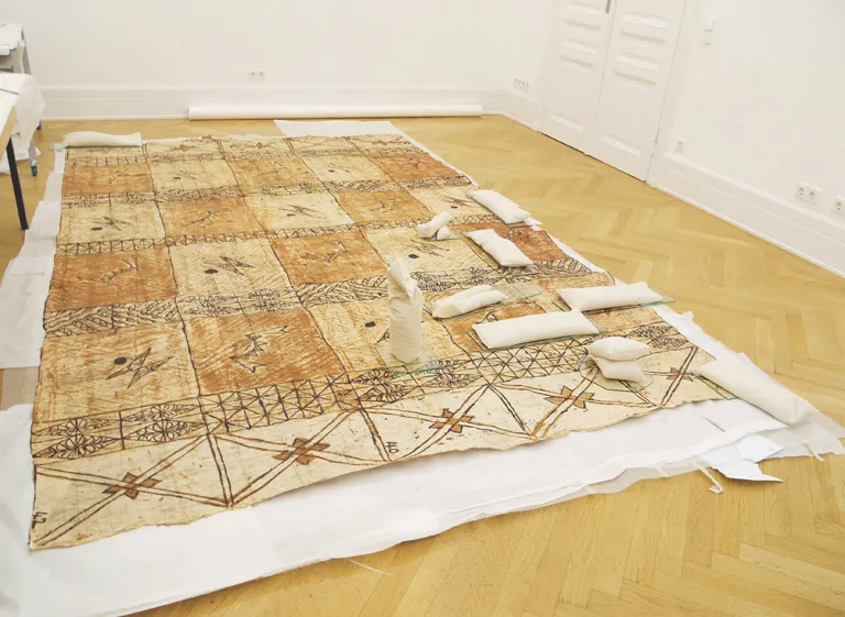 Die Restaurierung eines Rindenbaststoffes aus Tonga