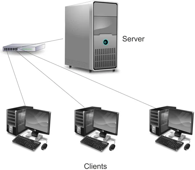 Ein Server ist ein leistungsfähiger Computer, der eine zentrale Verwaltung für die anderen Computer darstellt. Diese anderen Computer sind die „Clients“, also die „Kunden“.