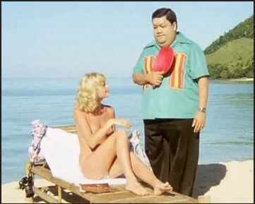 Mehrere Filme basieren auf einem ähnlichen Humor, bei dem ein dicker schwuler Mann auf der Suche nach sexuellen Kontakten meistens hektisch hin- und herläuft, wie dieser u.a. in Dr. Fummel und seine Gespielinnen (1970) und in Prostitution – heute (1970) zu sehen ist. In zwei Filmen – u.a. in Drei kesse Bienen auf den Philippinen (1979, s. Bild) – verkörpert der dicke Schauspieler Ike Lozada einen Schwulen. Ein Rezensent schreibt in Bezug auf diesen Film: Der fette schwule Hotelbesitzer ist natürlich schon allein deshalb witzig, weil er fett und schwul ist,158 was das mitunter recht geringe Unterhaltungsbedürfnis einzelner Zuschauer zeigt. Dass dicke Menschen als lustig angesehen werden, ist seit dem Beginn von Komödien – und nicht erst seit dem Komikerduo Dick und Doof aus den 1920er Jahren – bekannt. Witze über dicke Schwule sind eher einfach gestrickt und entsprechen meistens keinem anspruchsvollen Humor. Dicke Schauspieler werden oft als asexuell empfunden und haben damit eine Nähe zur Sissy-Figur in älteren US-Filmen.159 Es ist eine seltene Ausnahme, dass mit dicken Schwulen lustige und lustvolle Filme gedreht werden, ohne sich dabei über diese selbst lustig zu machen. Dicke Mädchen (2011) wurde für seine kühne Originalität dafür zu Recht ausgezeichnet.