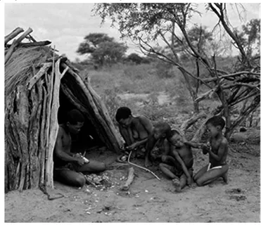 Abb. 2: Buschmann (San) Familie. Kalahari, Botswana (Foto: I. Eibl-Eibesfeldt).