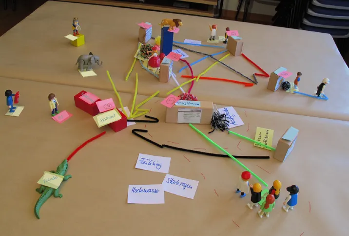 Professionelle Methoden zum Lösen von zwischenmenschlichen Problemen findet man u.a. im Coaching und in der Organisationsberatung. Dort werden z.B. komplexe Situationen mittels «Systemdarstellung mit Figuren» dargestellt. Mit dieser Methode bekommt man eine Übersicht, man findet schnell Zusammenhänge, kann das Zusammenspiel von Ursachen und Wirkungen erkennen. Dadurch, dass die Figuren leicht verschiebbar sind kann man die Darstellung leicht anpassen. Man kann gemeinsam arbeiten und sich ein, für alle passendes Bild erarbeiten. Das wollen wir hier auch anwenden für IT-Projekte, damit sie einfacher und erfolgreicher werden.