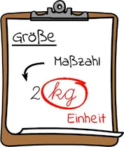 Sicherlich hast du schon einmal etwas von „2 Kilogramm“ oder „5 Tonnen“ gehört oder gelesen. Diese Kombination aus einer Zahl und einem Wort wird Größe genannt. Das Wort wird dabei als Einheit bezeichnet. Eine solche Einheit ist ein fest definierter Wert wie z. B. Länge, Gewicht oder auch Währungen (Geld). Die Zahl vor der Einheit wird als Maßzahl bezeichnet. Sie gibt an, wie viel du von der Einheit hast. So bedeuten 2 Kilogramm, etwas ist 2 mal schwerer als 1 Kilogramm, 5 Tonnen bedeuten, etwas ist 5 mal schwerer als 1 Tonne.