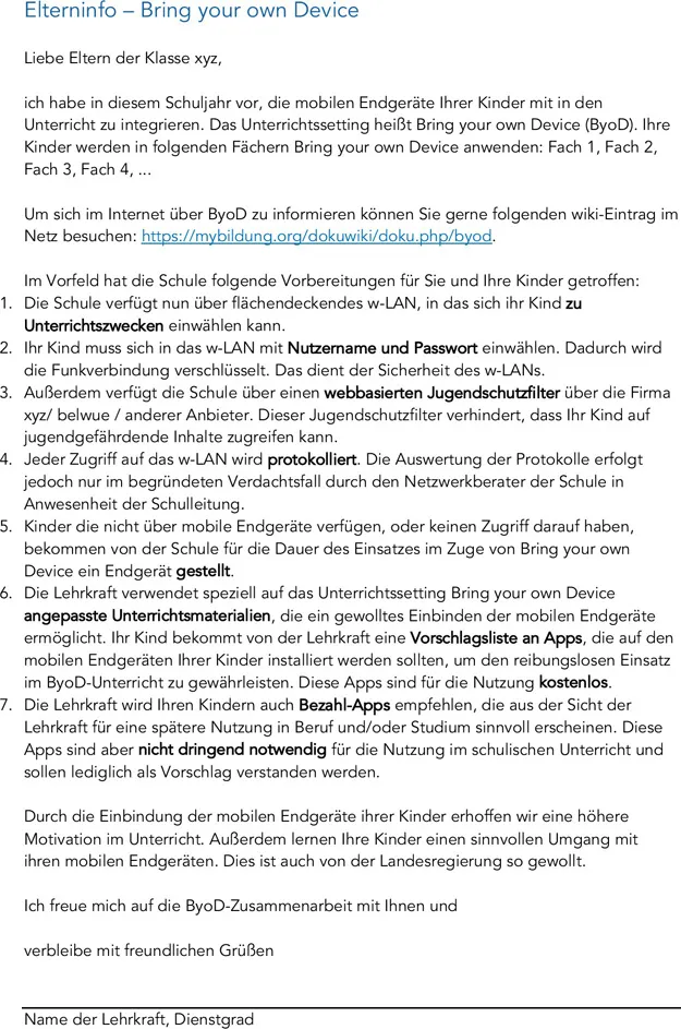 - Teil I – Das Unterrichtssetting Bring-your-own-Device