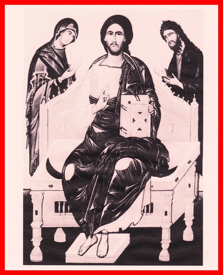 Nimm an, o Retter, Deiner Mutter Flehen, das sie Dir für die ganze Schöpfung darbringt, und aller Deiner Heiligen Bitten. Gewähre uns Dein Erbarmen, erhalte des Himmels Gewölbe ohn' Schaden, das Du zu Anfang ausgebreitet in Weisheit und hervorgebracht zu der Sterblichen Nutzen. Bewahre, o Logos, die ganze Umwelt, die die Erde umgürtet, vor schädlichen Einflüssen und schenke allen Verzeihung und Rettung und Dein großes Erbarmen.