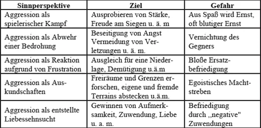 Tabelle 1: Fünf Sinnperspektiven kindlicher und jugendlicher Aggression (Rainer Winkel, zit. n. Heemeyer, o.J.)