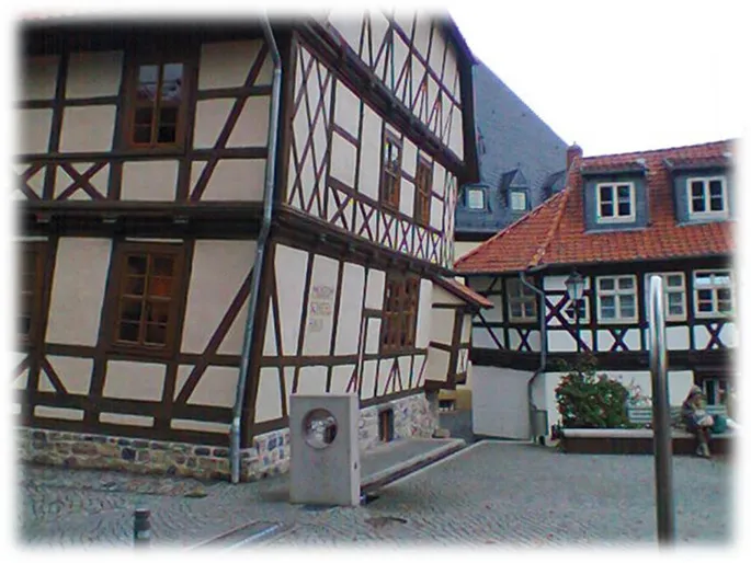 Hinterm Wernigeröder Rathaus findet ihr das "Schiefe Haus". Um 1680 errichteten hier am Standort der alten Mühle die Tuchmacher eine Walkemühle. Man sagt, das Wasser des ehemaligen Mühlteiches hätte den Boden aufgeweicht und die Fundamente der Mühle unterspült, bis das Gebälk irgendwann auf steinigen Boden gestoßen wäre. Ich hörte aber auch eine andere plausible Erklärung: