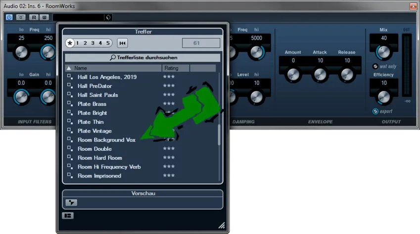 Testen Sie ruhig auch mal Presets, deren Namen vermeitlich nicht zur Spur passen. Vielleicht passt der "Big Snare Room" perfekt für die Vocals?
