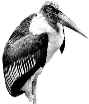 Im Käfig links der Marabu,