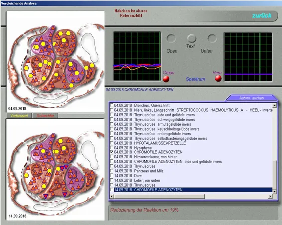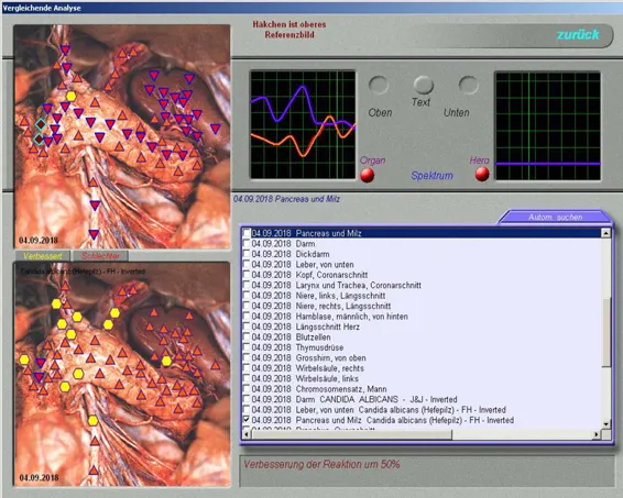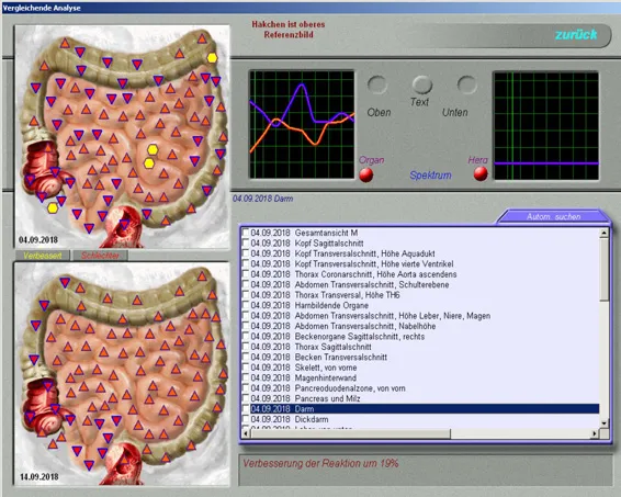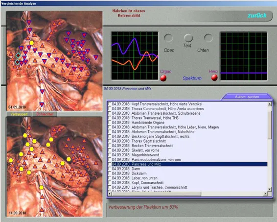 Abb. 9: Pankreas und Milz: 10 Tage später Nachmessung, Verbesserung der energetischen Reaktion um 53% nach kohlenhydratarmer Ernährung.