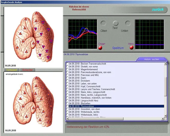 Abb. 6: Thymusdrüse: Nach aurachirurgische Auflösungsprozedur Verbesserung der energetischen Reaktion um 42%.