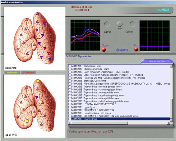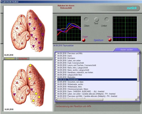 Abb. 10: Thymusdrüse: 10 Tage später Nachmessung, Verbesserung der energetischen Reaktion um 44% gegenüber dem Ausgangsbefund.