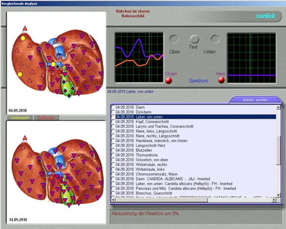 Abb. 8: Leber von unten: 10 Tage später Nachmessung, Reduzierung der energetischen Reaktion um 5% gegenüber dem Ausgangsbefund.