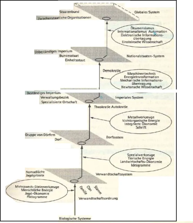 Mit Wilber geht der Verfasser davon aus, dass wir von Anbeginn der Kulturgeschichte der Menschheit eine evolutionäre Ko-Entwicklung von „System“ und Lebenswelt vollzogen haben.14