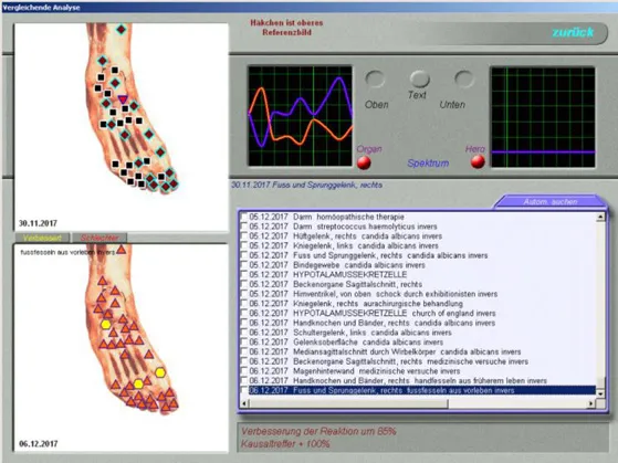 Abb. 4: Energetische Schwäche im Bereich der Füße, bei Invertierung von Handfesseln aus früherem Leben bessert sich der Befund um 85%.