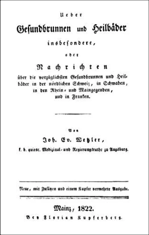 | 1822 | Joh. Ev. WETZLER in: Ueber Gesundbrunnen und Heilbäder, Zweyter Theil, Mainz |