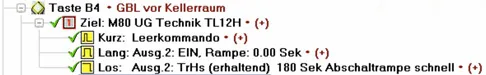- Wenn Sie das Treppenhaus betreten, soll das Licht angehen. Daher legen Sie den Ausgang auf B4 Lang und schalten ihn ein (Rampe=0, keine dimmbare Lampe).