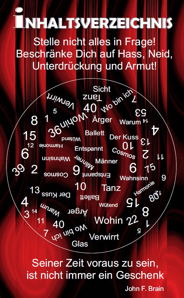 Mit einem "Dynamischen Inhaltsverzeichnis" beginnt der Weg zu meiner Gedichte-Welt.Eine mit Bildern verstärkte Sprachschöpfung beleuchtet das Wort.Tauchen Sie ein in die Welt von John F. Brain!