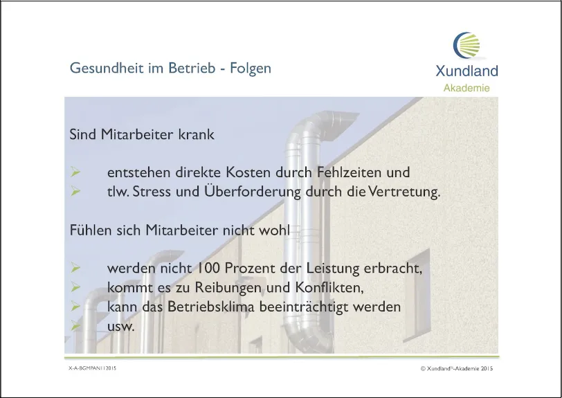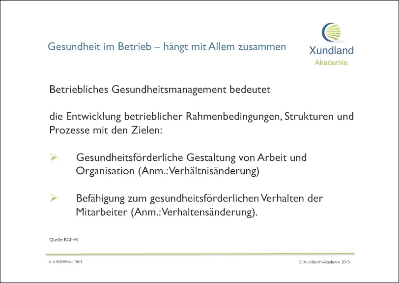 - Vorträge der Informationsveranstaltung "Gesundheit im Betrieb"