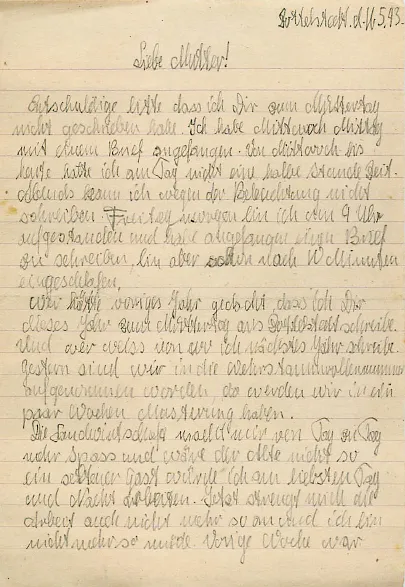 Bild 1 Auszug aus einem Brief von Christoph Ziegner, 16.05.1943, nach Hause