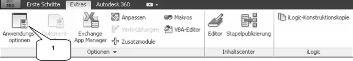 Um die Übungen fehlerfrei umsetzen zu können wird empfohlen, einige Grundeinstellungen zu kontrollieren. Wechseln Sie hierfür ins Register Extras um dort den Befehl