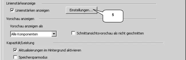 In den Einstellungen (3) sind die oben stehenden Änderungen zu übernehmen um dann im Register Zeichnung (4) die folgenden Grundeinstellungen umzusetzen: