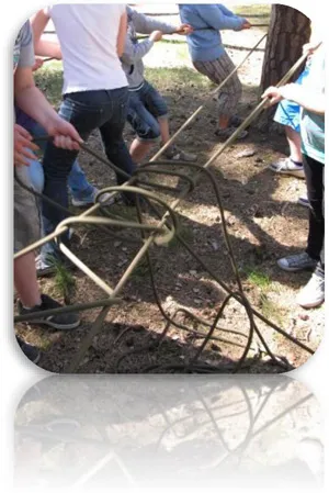 Hierzu nutze ich als Erstes ein kleines Teamtraining. Dafür sind jedoch keinerlei extrem große Aufwendungen oder Materialschlachten notwendig, um eventuell gleich im Vorfeld die Gruppe zu beeindrucken, damit sie am Ball bleiben und alles mitmachen. Im Gegenteil. Zauberwort „Rucksack-Pädagogik“. Alles, was in meinen Rucksack an Materialien hineinpasst, soll auch ausreichend sein, um die Gruppe für die nächsten zwei Stunden erfolgreich beschäftigen zu können.