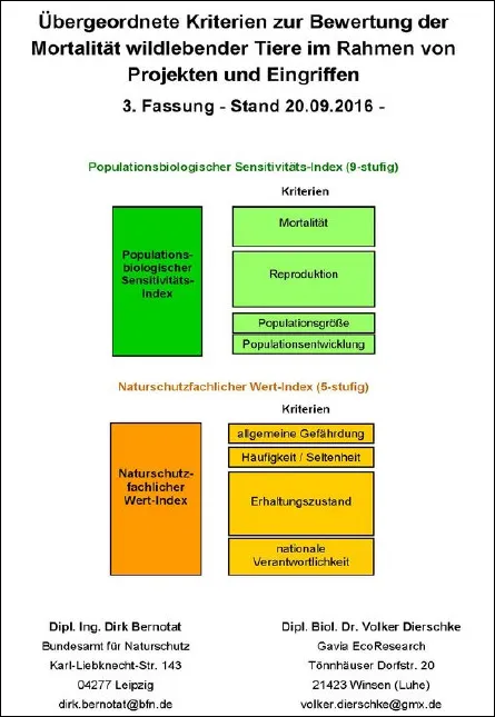BFN-METHODIK VON BERNOTAT & DIERSCHKE (2016): ÜBERGEORDNETE KRITERIEN ZUR BEWERTUNG DER MORTALITÄT WILD LEBENDER TIERE IM RAHMEN VON PROJEKTEN UND EINGRIFFEN