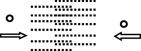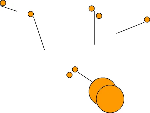 Bild 3.5: Kollision von einzelnen Raumquanten mit Raumquantenwolken