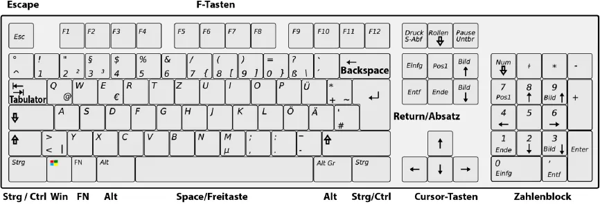 Einige der hier dargestellten Tasten werden wir im weiteren Verlauf des Kurses benötigen. Dies sind z.B. die Strg-Taste und die Return-Taste.