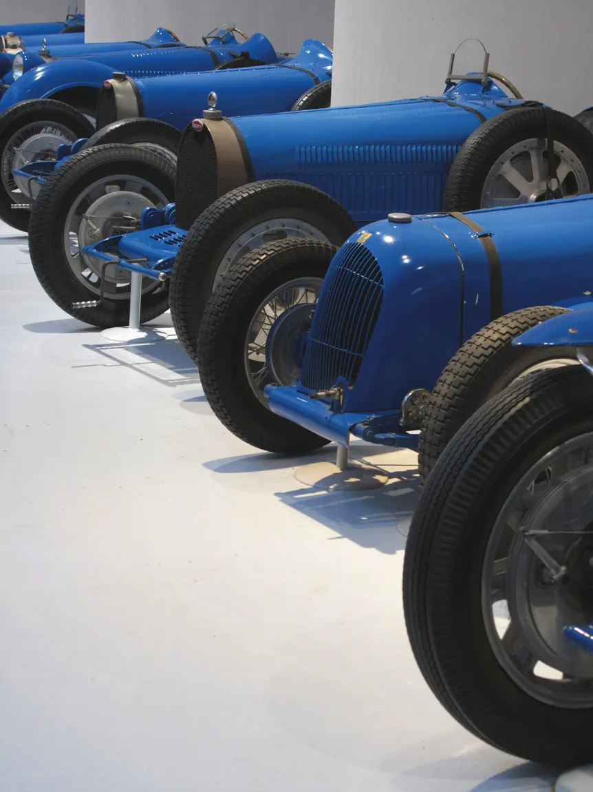 Abb. 2: Soweit das Auge schauen kann – Bugattis ohne Ende (Musée National de l’Automobile, Molsheim, Frankreich)