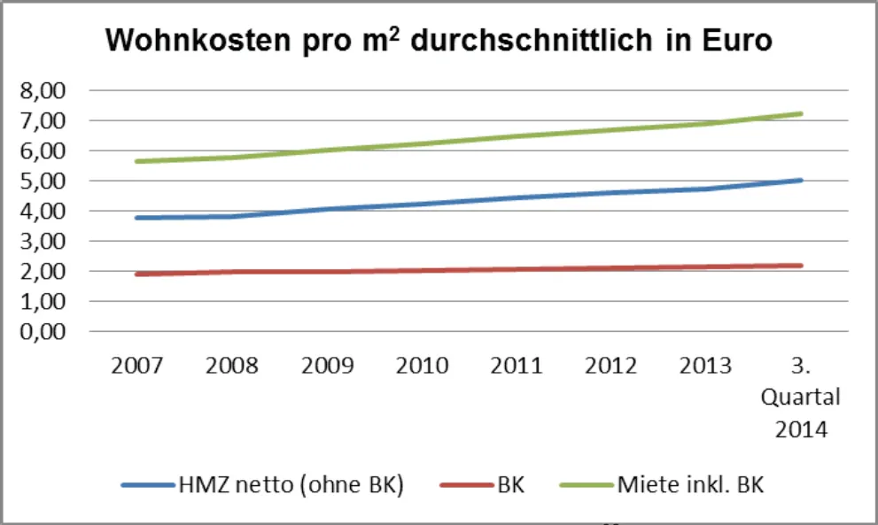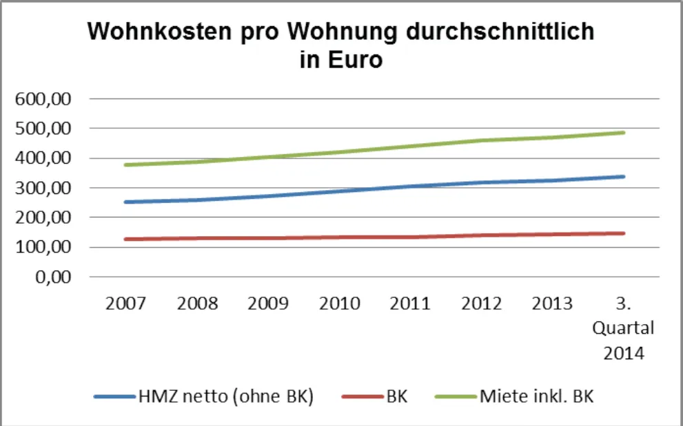 | Jahr | HMZ netto (ohne BK) | BK | Miete inkl. BK |