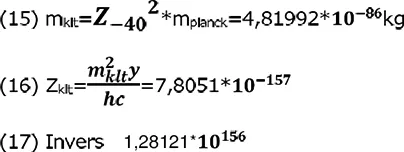 Wir ermitteln ein Kleinstteilchen (15) mit Hilfe der Zahl (9) und der Planckmasse, um dann diesem Kleinstteilchen eine Zahl zuzuordnen.