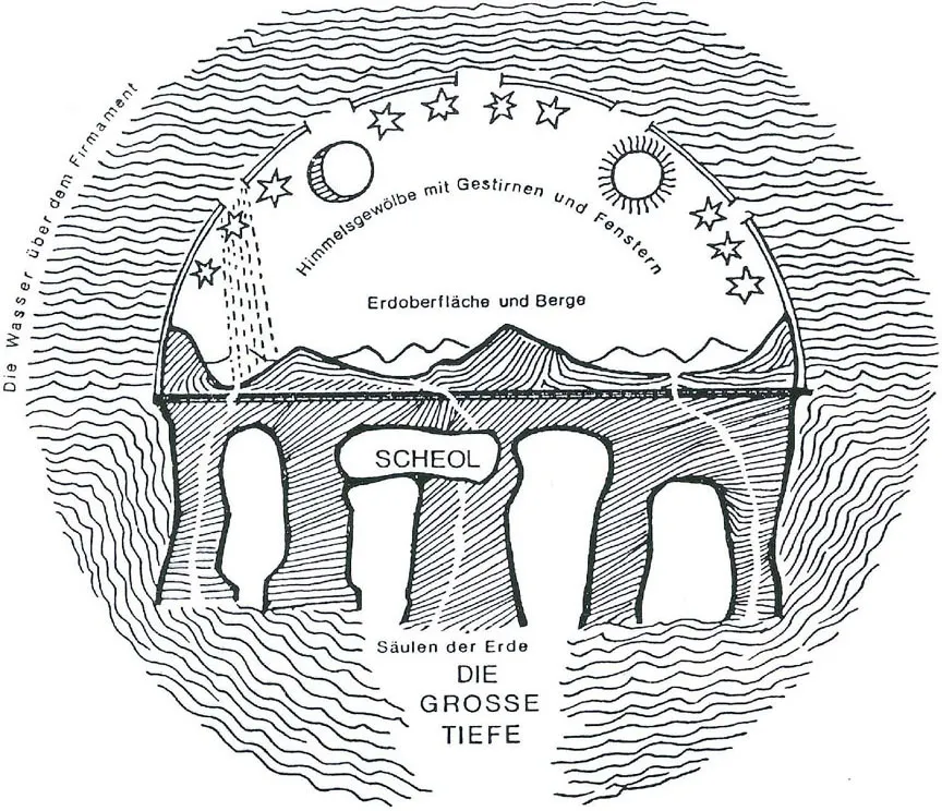 Der Himmel ist das Reich der Sonne, aber auch der Raum der Wolken, Bereich von Regen und Fruchtbarkeit, aber auch raqia‹, die Feste, das Gewölbe, das Firmament, die Fixsternsphäre; außerdem Reich übermenschlicher und göttlicher Mächte. Dieses Modell, betitelt ´Das altorientalische Weltbild`, gilt gewöhnlich auch als das der Bibel: