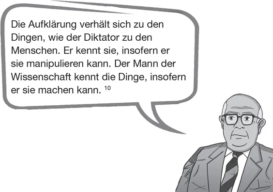 Machbarkeit ist das oberste Gebot der modernen Wissenschaft. Die Wissenschaftler, so Adorno, wollen die Welt und die Dinge nicht nur rational analysieren und verstehen, sondern immer auch kontrollieren. Mit jedem neu dazugewonnenen Wissen wird die Natur neu gestaltet, beherrscht und manipuliert. Damit hat die Wissenschaft automatisch etwas Diktatorisches an sich.