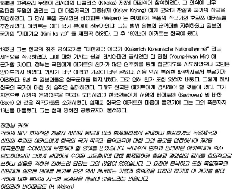 - Franz Eckert – Versuch einer koreanischen Nationalhymne: Hans-Alexander Kneider