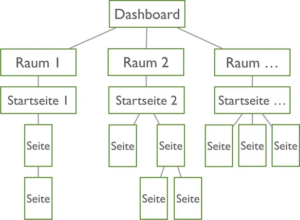 - Die Startseite eines Raumes: beschreibt meistens die in diesem Raum3 beinhalteten Informationen näher und führt eventuell Zuständigkeiten und neueste raumspezifische Nachrichten auf