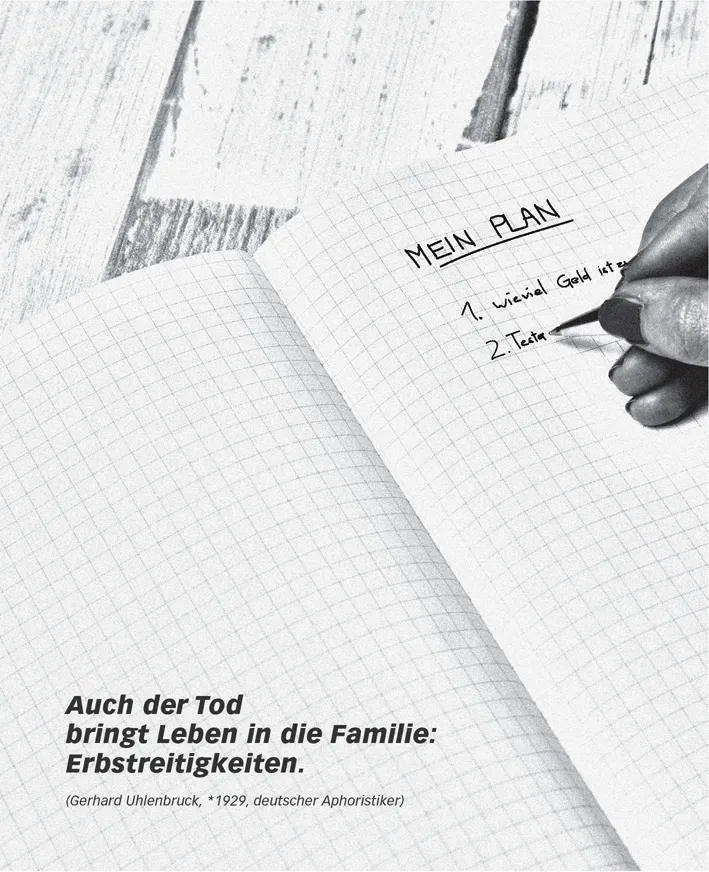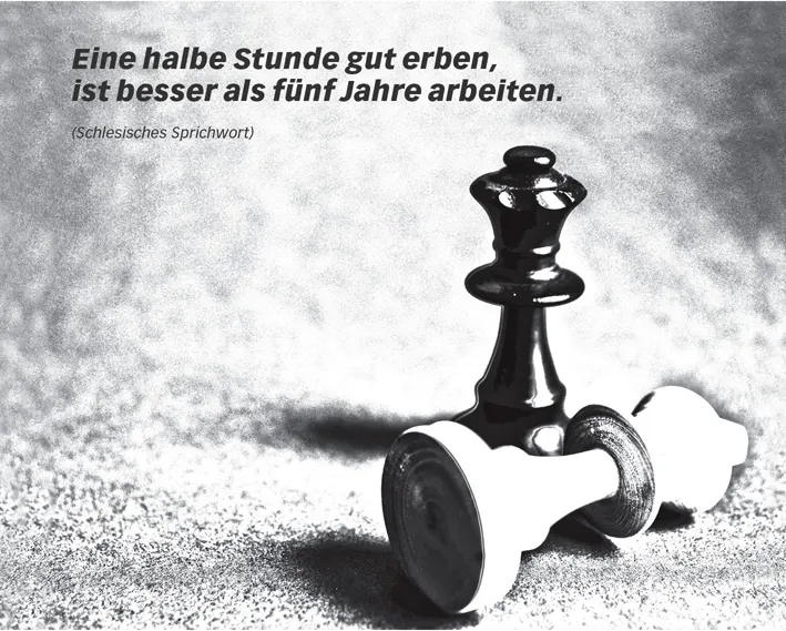 Hunderte Paragrafen, die das Erbrecht regeln, sind eine lukrative Spielwiese für Anwälte und Notare, weil hier hohe Rechtsunsicherheit herrscht. Es gibt einen großen Spielraum: die berühmte Grauzone. In der lässt sich bekannterweise vortrefflich agieren. Es gibt ein paar Paragrafen, gegen die kommt man nicht an, wie zum Beispiel den mit dem Pflichtanteil. Genau die solltest du gut kennen, also informiere dich, investiere in ein Anwalts- oder Notargespräch. Der Anwalt freut sich, dass er sich einen neuen Golfschläger kaufen kann, und du freust dich, weil du die Hintertüren kennst, durch die du schlüpfen kannst. Ein kleiner Tipp: Eine Rechtsschutzversicherung übernimmt zumindest einen Teil solcher Kosten – für einen Profi-Erbschleicher ist eine solche Versicherung in etwa so unverzichtbar wie für den Bestattungsunternehmer der Leichenwagen. Sorge also vor!