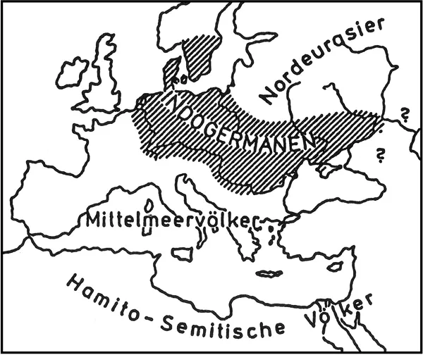 Die Abbildung 1 zeigt gestrichelt die vermutete Urheimat der Indogermanen um 3000 v. u. Zt. zwischen Nordsee und Schwarzem Meer nach Lothar Kilian6.