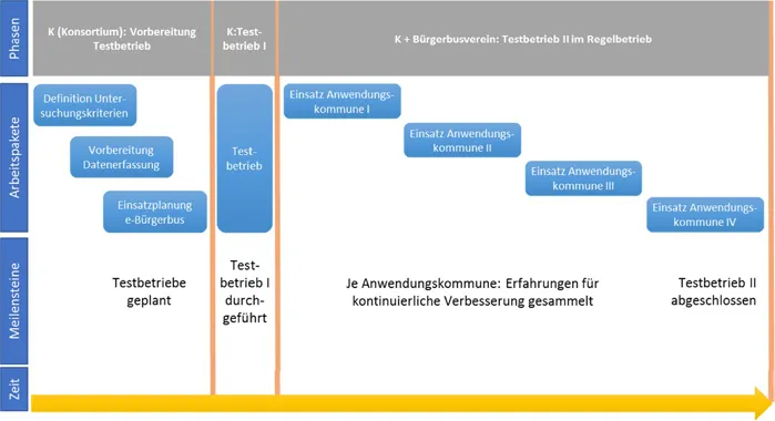 Die Ergebnisse dieser Erprobung fließen in diesen Abschlussbericht ein, der zuständigen Ministerien in Baden-Württemberg sowie interessierten Bürgerbuslandesverbänden und -vereinen fundiert die Sinnhaftigkeit des Einsatzes von e-Bürgerbussen in Abhängigkeit kommunaler Besonderheiten liefern soll. Insbesondere können die Ergebnisse für den Vergleich mit dem Einsatz konventionell betriebener Bürgerbusse herangezogen werden.