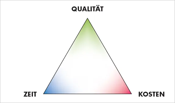 Für Sie bedeutet das, Sie müssen die drei Größen Zeit, Kosten und Qualität so ausbalancieren, dass die Erwartungen des Kunden, aber auch die des eigenen Teams und Unternehmens, erfüllt werden.